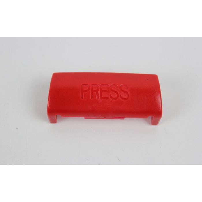 Dette er den røde plastknapp som sitter på toppen av låsemek., den du trykker på for å løse ut belte.
